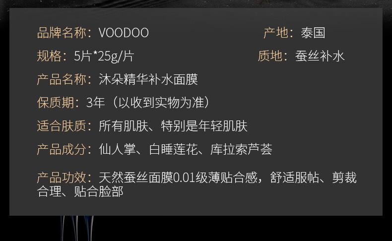 VOODOO泰国沐朵迷魅补水精华面膜淡化痘印闭口滋润睡眠面膜