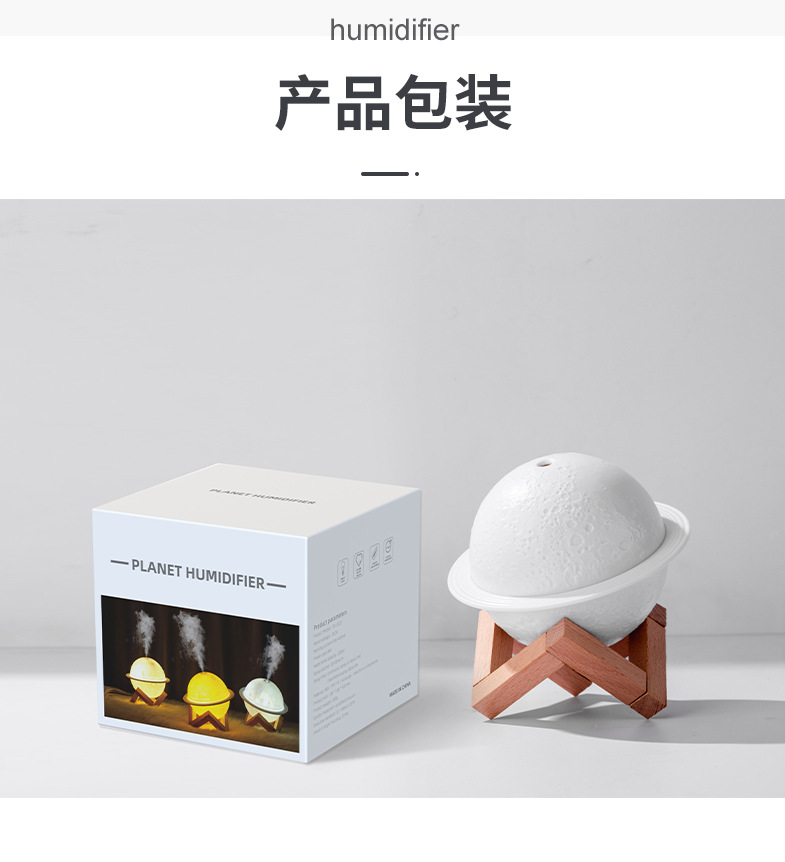 爆款月球灯加湿器USB小夜灯充电式卧室桌面星球灯空气净化器