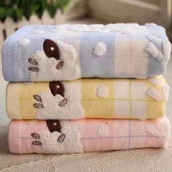 双层布艺懒羊羊提花手巾 纯棉绣花卡通家用纱布洗脸毛巾5条@*