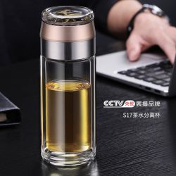 S1679茶水分离杯高硼硅杯子创意透明带滤网玻璃杯@**